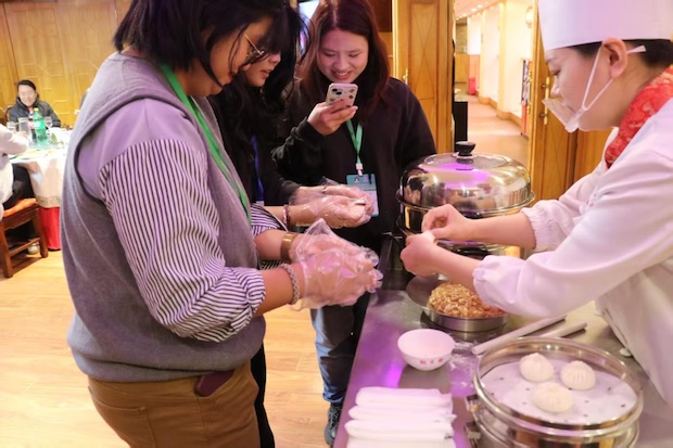 Students from Taiwan make Goubuli Baozi by hand in Tianjin. [Photo by Yan Dongjie / chinadaily.com.cn]