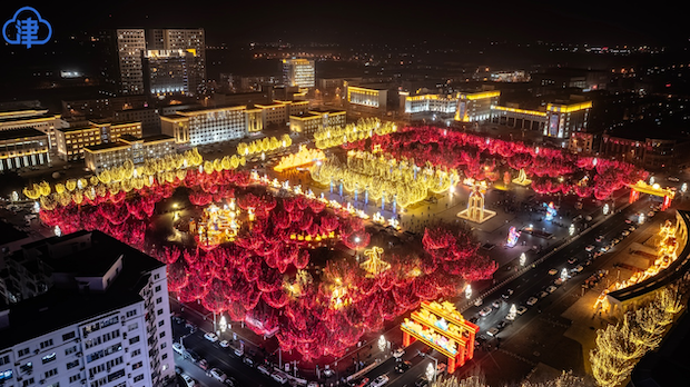 An aerial view of the lighting display in Xiqing district, Tianjin. [Photo/Jinyun App]
